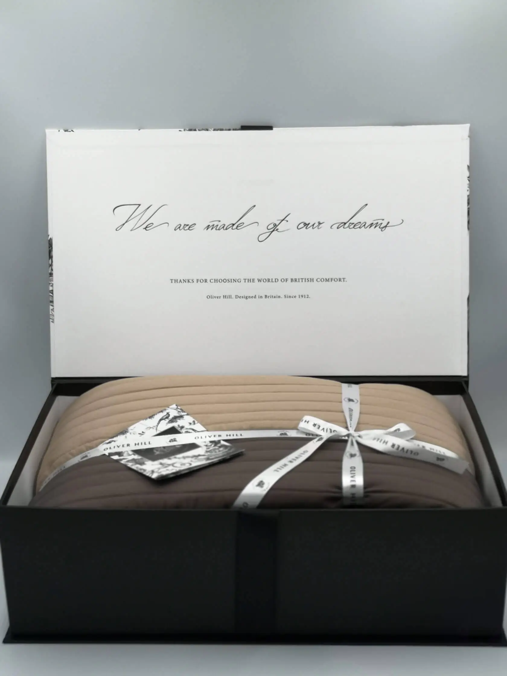 Размер – 220х240 Цвет – бежевый шоколад Ткань – микрофибра Наполнитель – синтепон Упаковка – дизайнерская коробка